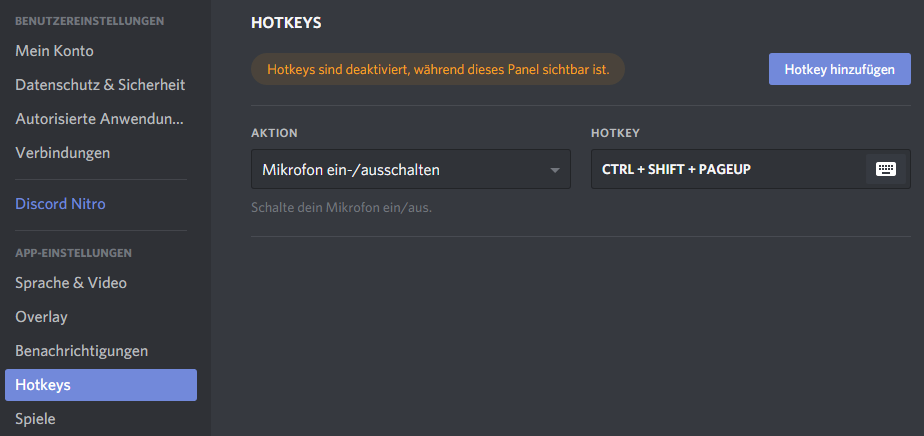 Benutzereinstellungen – Hotkeys