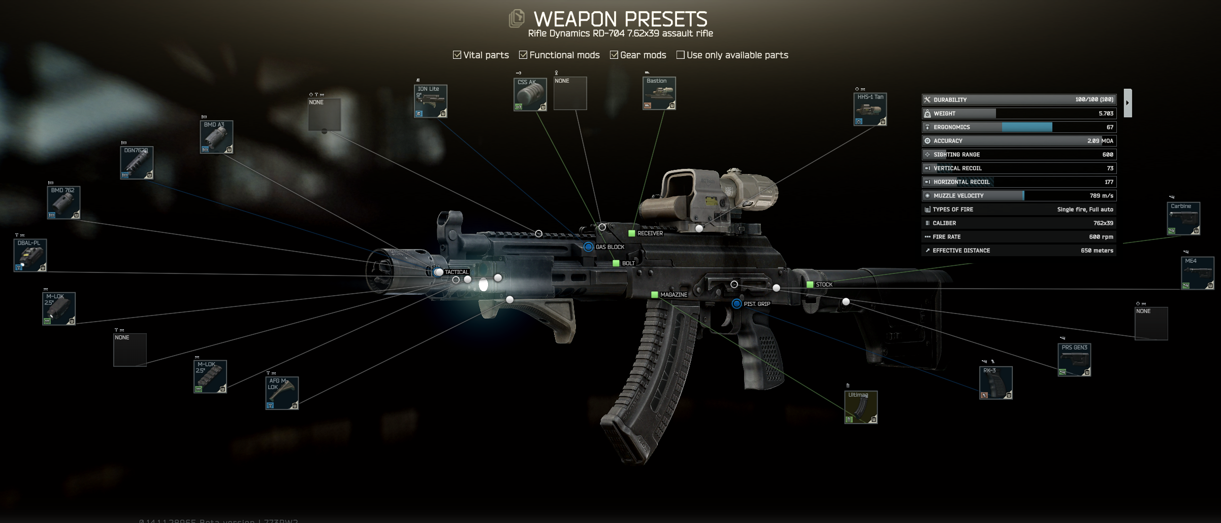 Hi alle, ich bekomme reltativ oft die RD-704 aus den SCAV Boxen geliefert - finde aber, dass die im Vergleich zu anderen Waffen einfach Sch* zu modden ist. Hier mein "bestes" Mod, das noch bezahlbar ist.