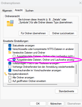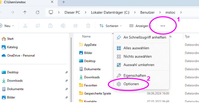 - Oder linke Maustaste gedrückt halten um den Ordner in die Schnellauswahl nach links zu schieben.